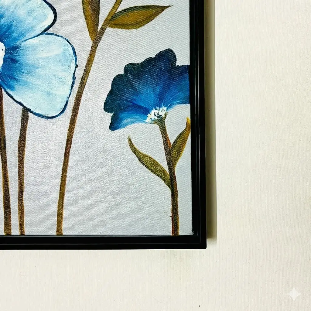 Elevate your living space with Azure Serenity, a stunning hand-painted oil work that captures the delicate beauty of nature with a bold, contemporary twist.