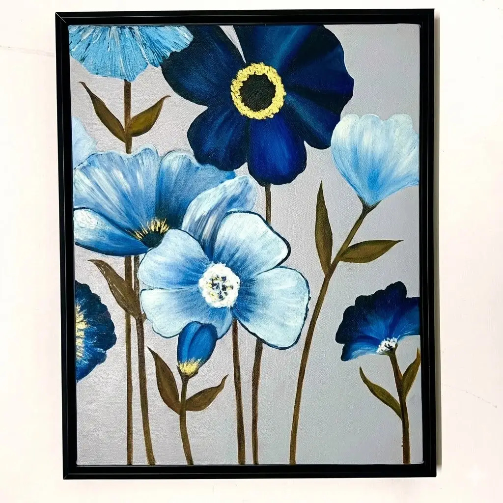 Be the first to review “Azure Serenity: Framed Original Oil Painting – Modern Blue Floral Art”